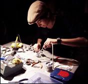 Pictured at left is my husband dAS, who has been at my side throughout the entire process, assisting in many ways with his keen organizational abilities, and generally putting up with my insanity throughout the entire project. While I've been the one sitting at the worktable, assembling all of the little tiny parts, sniffing soldering fumes and nearly snipping my fingers off on several occasions, he's been on the receiving end of things, gathering up the finished packages, packing, sorting and getting them ready to ship out.
