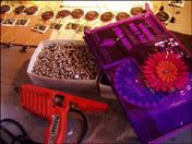 Photo of my worktable during the hot-glueing phase of production... Not much more can be said about the hot-glueing phase except for two words---- PHEEEE--EEEWWWW! (stinky stuff!)